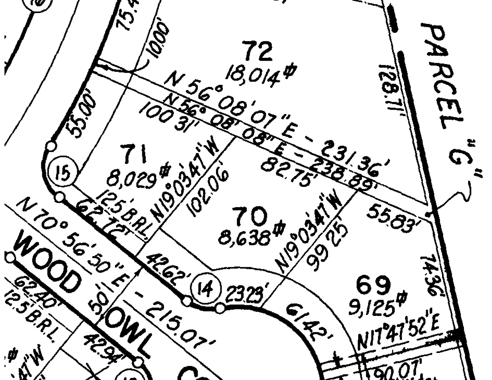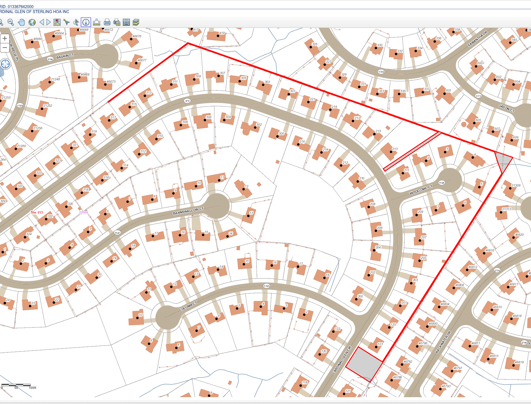 end of parcel A (the open lot between 121 & 123 Cardinal Glen Circle) all the way around to 315 Cardinal Glen Circle, with